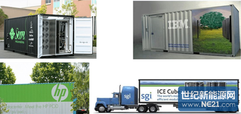 通讯行业中的集装箱数据中心最早源于Sun在2006年提出的“黑盒子计划”,其采用20尺的标准集装箱,内部放置服务器和供电设备等,此设计优势明显,并且很快成为了行业的热点,如今,IBM、HP、谷歌、思科、微软等巨头纷纷涉足(如图6),产品更是应用于世界各地,包括沙漠、沿海地区,其应用场合与光伏产品类似。