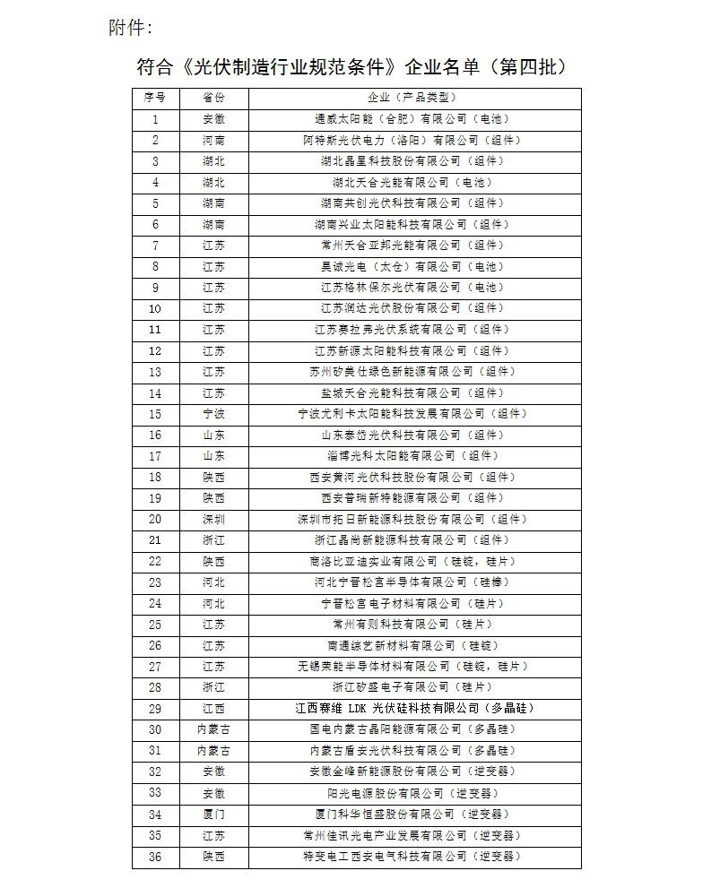 附件:符合《光伏制造行业规范条件》企业名单(第四批)