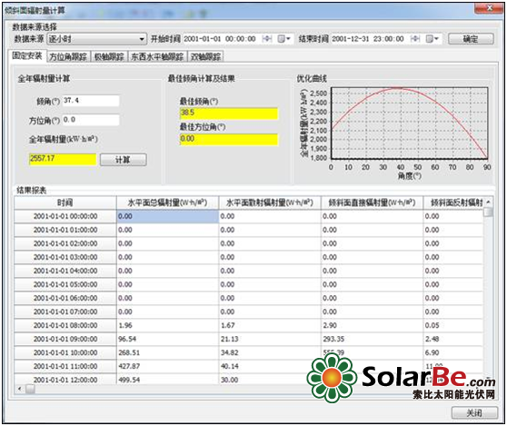 4) 实现辐射资料具有水平面总辐射、直接辐射、散射辐射时的发电量计算功能;