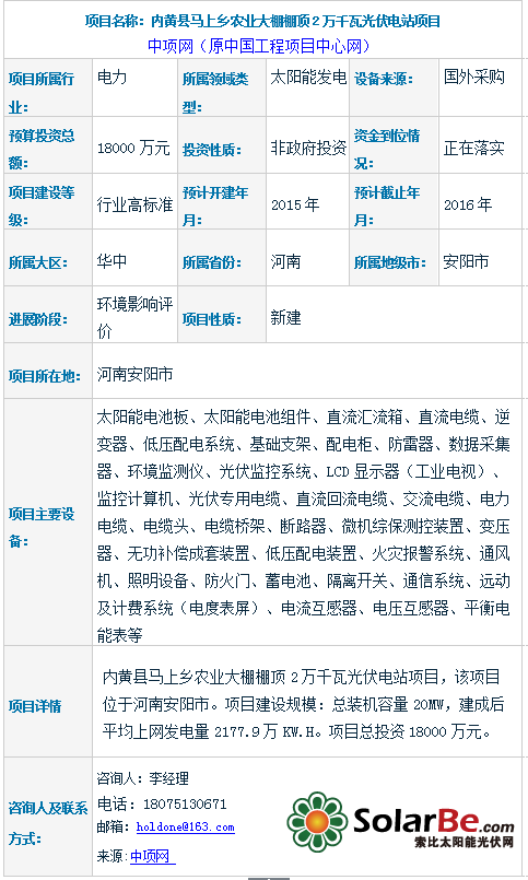 内黄县马上乡农业大棚棚顶2万千瓦光伏电站项目