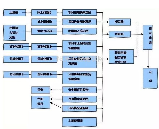 ⑤. 持项目申请书的批文和以上准备材料向土地、环保行政主管及电力公司正式申请选址的“用地预审报告”,“环境影响报告”、“并网接入承诺文件”