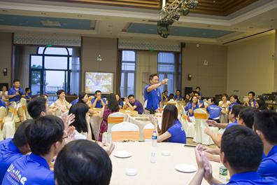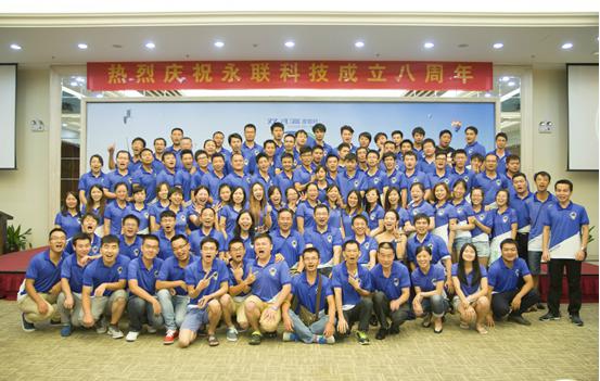庆典晚宴上,朱董举杯向全体到场员工致谢并同祝永联科技成立八周年