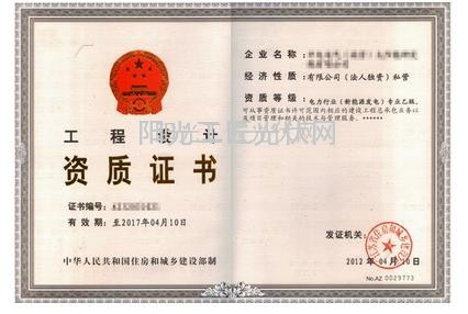 2、工程设计资质证书
