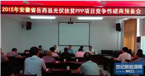 9月6日,2015年安徽省岳西县光伏扶贫PPP项目竞争性磋商预备会召开,会议由安徽省招标代理机构省招标集团股份有限公司总经理蒋玉红主持,安徽省岳西县扶贫办、发改委、财政局、经科委、招管局、供电公司、正鼎园公司,有关乡镇以及部分光伏企业主要负责同志参加。