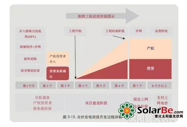 政策性银行利用其在资本市场的优质信用评级获得低成本融资,并建立“可再生能源计划”等融资平台向商业银行提供贷款支持光伏发电项目;商业银行直接面向光伏电站投资者发放贷款,负责项目的风险评估和控制,并以优惠利率向政策性银行进行再融资;根据德国复兴信贷银行的“可再生能源计划”,可再生能源发电项目的投资方可获得高达投资额100%的融资支持,贷款额上限为2500万欧元,贷款期可达20年,并享有利率补贴和上限为3年的免还款期。在积累了广泛的光伏项目评估和融资经验后,很多商业银行纷纷面向光伏电站开发自有融资产品。