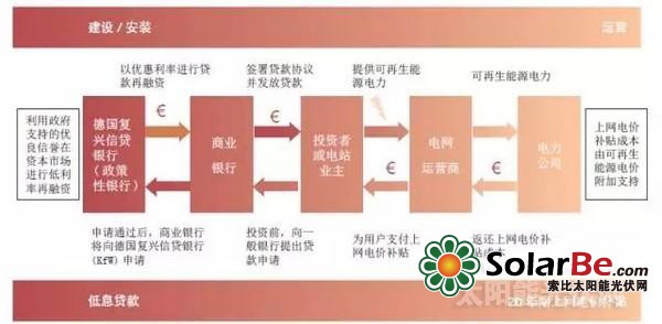德国采取政策性银行主导的债务融资模式,利用政策性银行的优质信用评级获得低成本融资,为光伏电站项目提供优惠的长期贷款支持。