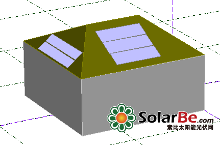 一般琉璃瓦瓦面的坡角很大,因此别墅屋面组件实际安装时一般沿屋面平铺,对于本例,组件布置如图2所示,根据屋面实际可利用的面积,正南屋面组件安装朝向采用纵向安装,正西屋面为横向安装。