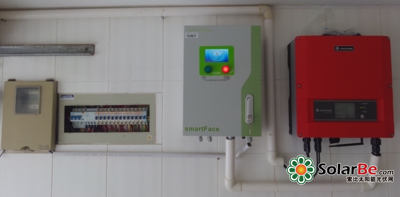 图15所示从左到右分别为交流侧用户电表、并网柜和逆变器,其中交流配电箱采用南瑞FamilyFace壁挂式并网接口设备,内部预留光伏侧电表安装位置,交流配电箱出线接到原用户电表,用户电表需要等供电公司人员上门免费更换为双向电表。上一篇介绍的户用光伏电能计量接线第二种方法,是某某供电局所采用的接法,经和业内人士交流存在一定的缺点,因此不宜在实际中采用。