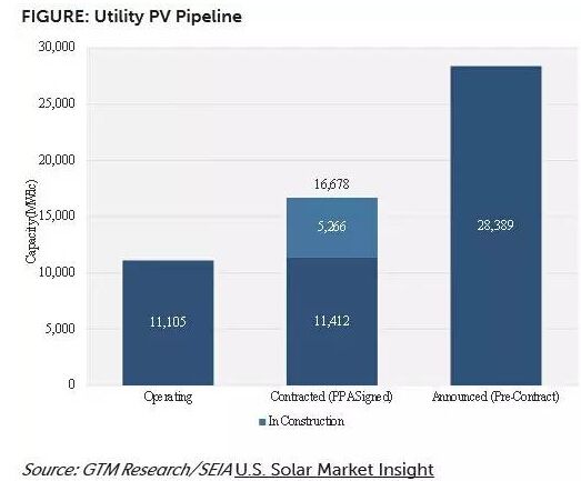 “公用事业级光伏市场仍然主导了行业的增长。预计下半年的增长将再创新高。目前已并网的容量只是诸多大规模低成本集中采购项目的一部分。”GTM研究所高级副总裁Shayle Kann表示。