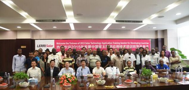 索比光伏网讯:9月14日,由中国商务部主办、甘肃自然能源研究所承办的2015年发展中国家太阳能应用技术培训班学员再次来访,参观了乐叶光伏位于西安的总部与研发中心。在学习了大量可再生能源技术方面的理论知识之后,学员表达了希望考察相关装备制造厂和企业的意愿,基于上一次参观与交流的美好体验,乐叶光伏再次成为他们的选择。在甘肃自然能源研究所副所长李世民的带领下,来自肯尼亚、南非、赞比亚、巴拿马等多个发展中国家的48名外籍学员来到乐叶光伏进行实地考察,参观了乐叶光伏母公司隆基股份的全球研发中心、拉晶生产线以及切片生产线,并与乐叶光伏代理执行董事李文学、销售总监唐旭辉、海外营销经理王建勋、市场部负责人王英歌等企业领导进行座谈交流,双方围绕现在所面临的重大能源问题积极开展讨论。