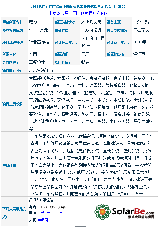 广东徐闻40MWp现代农业光伏综合示范项目(EPC)