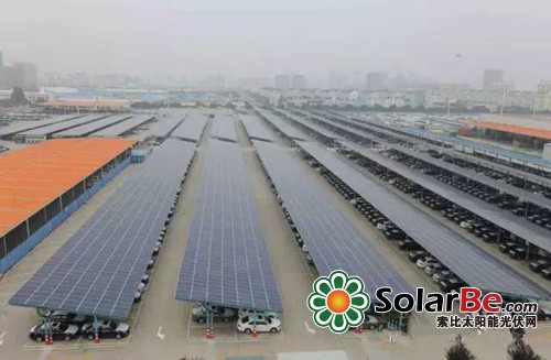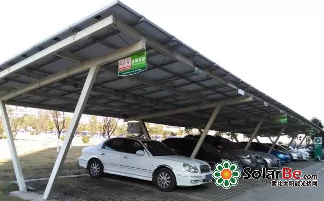 第一波先欣赏下光伏组件安装在车棚之上的光伏车棚
