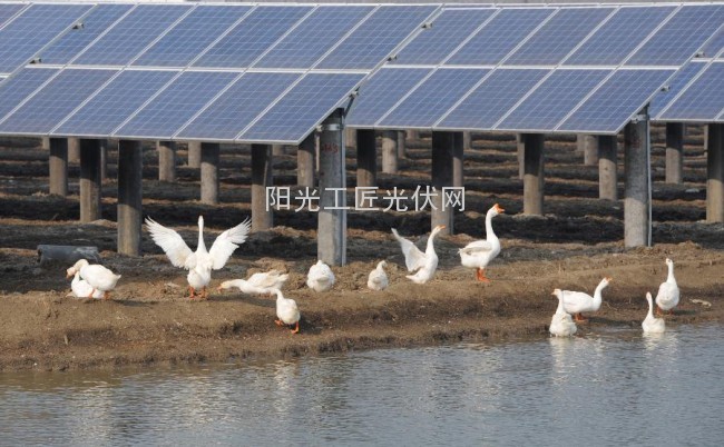 即在鱼塘上铺设太阳能电池板,光伏板发电的同时,还能遮挡阳光,降低水温,促进养殖业发展。