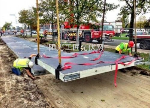 在阿姆斯特丹的郊区,100米长的太阳能自行车道(SolaRoad)的一部分铺设了光伏电池,并加盖钢化玻璃。自2014年10月开放以来,到2015年5月,这条路共产生了3000kwh的电力。