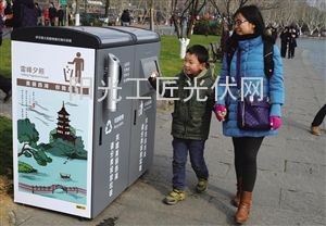 在中国黄山、西湖等公共场所,也可见到太阳能垃圾桶。但太阳能垃圾桶价格昂贵、市民使用不习惯,因而在推行上受到阻碍。