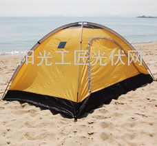 太阳能帐篷顶上铺着一片太阳能薄膜,有阳光时,这块薄膜就将太阳能转换为电能,储存并供帐篷照明使用。由于薄膜的软性,太阳能帐篷可任意折叠、弯曲、收纳。