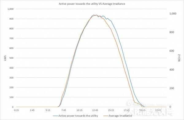 图7中曲线的差异揭示了组件与辐照仪的朝向的差异。在该案例中,辐照仪的朝向相对于组件偏东。所以错误的辐照信息会使系统效率的计算完全不可靠。