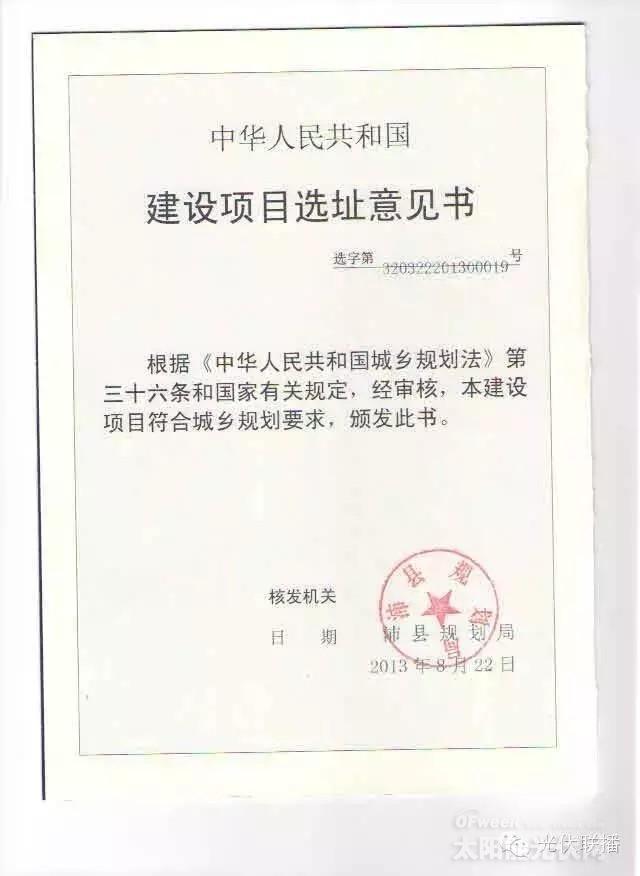 ⑤.持项目申请书的批文和以上准备材料向土地、环保行政主管及电力公司正式申请选址的“用地预审报告”,“环境影响报告”、“并网接入承诺文件”