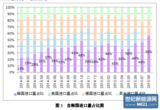 图 3 自韩国进口量占比图