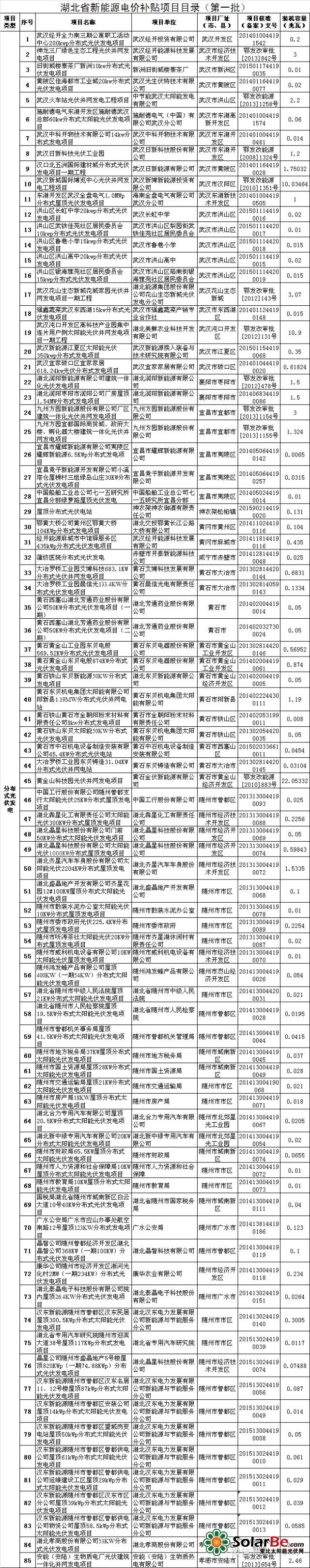 湖北省能源局关于新能源电价补贴项目目录 (第一批)审核确认结果的公示
