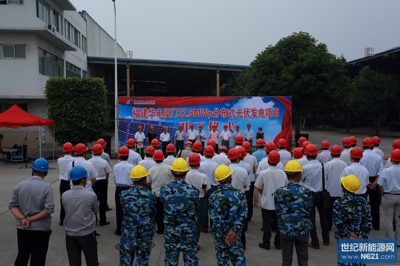 9月25日上午,福建区域首个开工的分布式光伏发电项目--22.8MWp分布式光伏发电项目正式开工建设,该项目由华电(厦门)能源有限公司投资建设,项目位于福建省厦门市集美厦工园区、翔安火炬高新区、东孚工业园区和集美后溪工业组团,利用四个工业园区的66家企业厂房屋顶建设"自发自用、余电上网"的分布式光伏项目。本项目建设规模22.8MWp,占用屋顶面积约22万平方米,各分布式光伏电站将按无人值守的原则,在区域中心位置建设集中式远程监视中心。工程总投资约18253万元,建设工期3个月,确保年底投产。