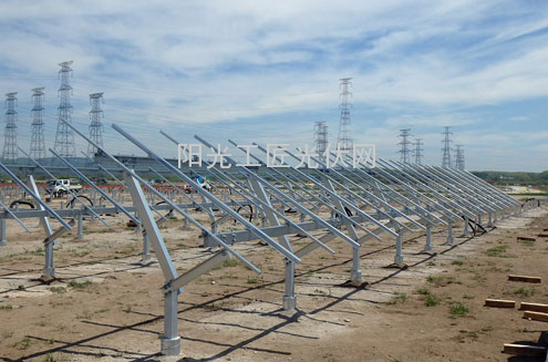 图5:架台组装。一个阵列(42张电池板)用9根支柱支撑