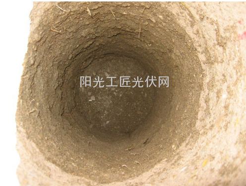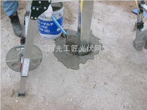 图9:在坑中利用夹具固定桩脚,注入水泥浆