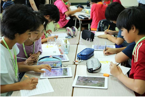 该课程的目标是为孩子们营造以能源为主的创造性思维机会,以具有软银集团特色的ICT教育方式为特点。第一天的课程除了放映可加深对能源理解的动画外,还人手一台iPad,利用拍摄的图像等总结自己对未来能源的看法。第二天分组讨论,利用iPad的APP把总结的内容制成作品来发表。