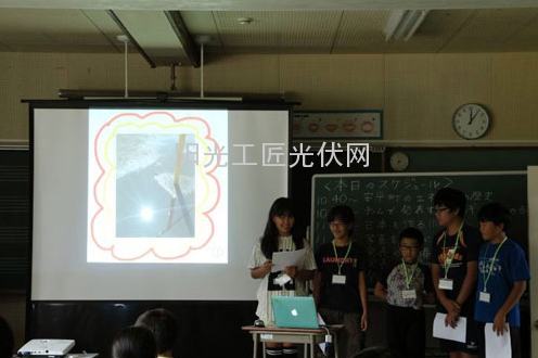 通常,未来能源项目是在当地的百万光伏电站运转后实施的。但安平町在建设中就开始实施了,截至2015年夏季已经在4所学校实施过(图11、图12、图13、图14)。软银能源地区贡献推进部部长青木智久称,由于是日本最大级别的光伏电站,町内很多人都已经听说。希望小学生很快也能关注。
