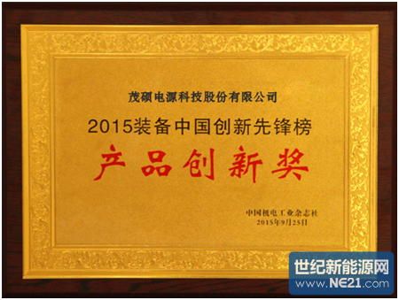 近日,由《中国机电工业》杂志主办的“2015装备中国创新先锋榜”评选活动中,茂硕逆变器凭借“多电平拓扑技术”及近年来在海内外光伏市场中的优异表现一举斩获此次评选中最具含金量的“2015装备中国创新先锋榜•产品创新奖”。值得一提的是,天合光能、阳光电源、追日电气也一起入选了“创新先锋企业“,并与茂硕电气携手作为光伏行业创新榜样企业出席了本次中国装备制造类企业的盛宴。