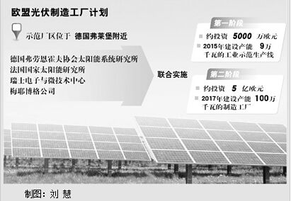 据沃森介绍,这个项目计划分两个阶段推进:第一阶段约投资5000万欧元,在2015年建设产能9万千瓦的工业示范生产线;第二阶段约需投资5亿欧元,到2017年建设产能100万千瓦的制造工厂。目前第一阶段计划正在紧锣密鼓实施中,第二阶段还处于融资阶段。