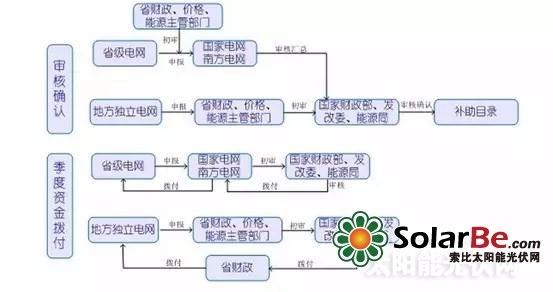通过并网验收后的分布式光伏发电项目逐级向经同级财政、价格、能源主管部门审核后逐级上报。电网汇总后上报财政部、国家发展改革委、国家能源局对报送项目组织审核,并将符合条件的项目列入补助目录予以公告。