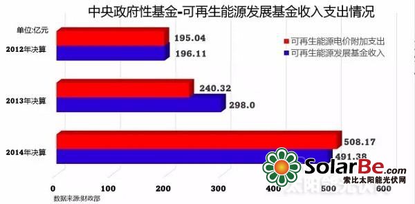 2014年中央财政可再生能源发展基金收入的基金只有不到500亿元的规模,相比高速增长的可再生能源装机,基金的缺口越来越大。