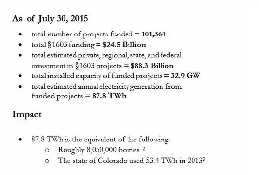理论上说,国会应该通过一个综合性的税务改革方案,一次性解决这一系列问题,而在现实中,通过这样的法案可能要花几年的时间。Hecimovich表示:“政府花费了巨资的领域却存在这样的不确定性,这对行业来说是至关重要的经济问题。”截至2015年8月,仅1603计划下可再生能源获得的政策支持就达到245亿美元。