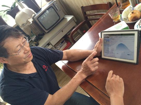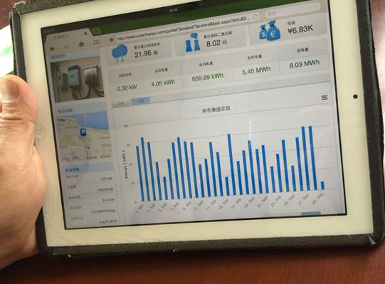 我们刚坐下,蔡先生便拿出iPad给我们展示自己家电站的发电情况。“我的电站从去年八月份开始发电,到目前为止已经发电八千多度,天气好的情况下一天能发三十多度电,完全能满足家里的所有用电,并且还有富余。余下的电自动上传到国家电网,可以上网卖电赚钱。供电局每个月都会将卖电的钱打到我的银行账户上。”