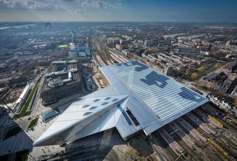 新的鹿特丹中央火车站是愉快的、开放而透明的公共交通枢纽,并作为一个标志性的交汇点。车站屋顶面积达28000平方米,130000块装置有太阳能电池板的玻璃覆盖了其中的10000平方米。这是在荷兰最大的车站屋顶太阳能应用项目,也是欧洲最大的屋顶太阳能项目之一。考虑到鹿特丹中央火车站周围的高层建筑的影响,太阳能电池放置在屋顶照射到最多的阳光的部分。根据玻璃面板透光率不同时,会使用不同模式的太阳能电池。屋顶阳光照射最充足的地方,太阳能电池板安装的密度就最大。屋顶上的太阳能电池板还有较高的透明度,所以能够保证站内有足够的采光。太阳能电池的使用使火车站的二氧化碳的排放量减少了8%。而且这些太阳能电池预计每年将产生320兆瓦的能量,足够为100户家庭提供能源。
