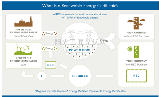 正如上文所说,无论采取何种方式进行发电,所输出的电力必须并入电网才能够输送给终端用户使用。用户在用电的时候无从区分所用的电是来自于常规的化石能源还是可再生能源,这就会导致对于新能源的鼓励政策没法真正实施。为了解决这个问题,美国环境保护局(Environmental Protection Agency-EPA)于上世纪90年代提出可再生能源配额制度RPS。可再生能源配额制度RPS是指一个国家或地区用法律的形式,强制性规定可再生能源发电在总发电量中所占比例的一项制度。而可再生能源证书REC制度,又称绿色电力证书制度,是基于可再生能源配额制度RPS的一项政策工具。所有可再生能源配额制度RPS项目中,都包含可再生能源证书RECs交易,购买RECs是实现RPS的一种手段,也是实现RPS的一种证明。
