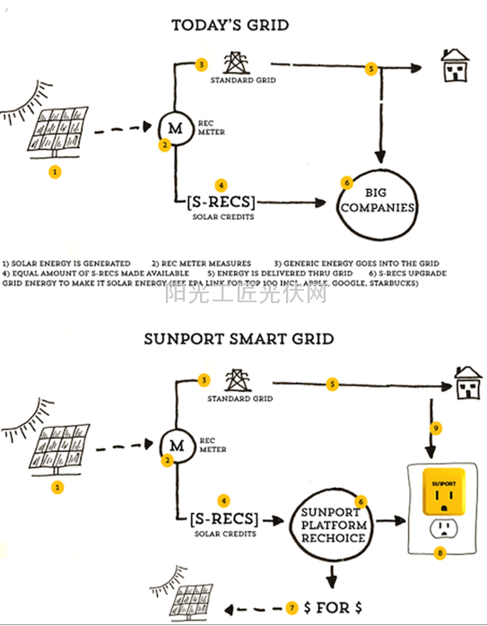 那么问题来了:SunPort本身没法通过太阳能发电,它究竟是如何让你在家里不安装太阳能电池板就可以用上太阳能发的电呢?这一切都要归功于上面提到的可再生能源证书REC。