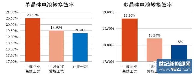 单晶硅片与多晶硅片在晶体品质、电学性能、机械性能方面有显著差异。图1展示了单晶和多晶硅片的外观差异;图2展示了单晶硅片的电学性能差异;图3展示了单多晶硅片的机械性能差异。,单晶VS多晶,单晶更有优势; 表1、单多晶硅片性能对比
