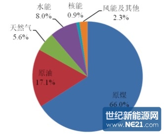 2014年中国累计消费一次能源42.6亿吨标煤,其中商品化的可再生能源利用量折合标煤4.4亿吨标煤,占比约为10.3%。根据目前掌握的数据,2015年底可以实现11.4%的目标。下图为2014年中国的能源消费结构。