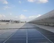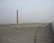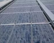 如图3、4所示:该电站安装在一个水泥搅拌站屋顶上,由于水泥搅拌站灰尘较大,水泥灰遇水后凝固,附着在组件表面无法清除,组件基本失效无法运行。