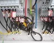 如图1所示:电站施工过程中汇流箱内布线较为紊乱,且线标采用普通标签纸标记时间长易脱落,对后期的故障排查带来不变。