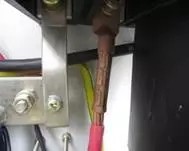 如图8所示:电站施工过程中汇流箱接线端子线头制作不规范,压线螺丝未压紧,导致线头长时间发热烧毁。