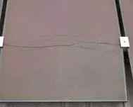 如图5所示:该电站为薄膜无边框组件,在电站安装过程中由于未使用扭力扳手固定螺栓,导致部分组件由于压块处压力过大破损。