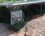 如图3所示:该电站汇流箱安装处,由于泥土滑落积于汇流箱四周,植被长时间无人清理,导致汇流箱散热较差,长期水土流失又未及时清理,极易造成汇流箱被泥土覆盖。