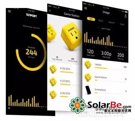 SunPort使用标准的三孔插口,可用于1200w的负荷,具有板载功率测量、处理、存储和通信能力。其使用起来非常简单,只要将SunPort插到三孔插座上,然后把其他电器的插头插到SunPort上即可。同时,可以通过手机客户端监测通过SunPort的电量。