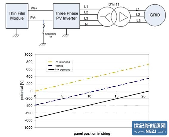 经过研究,大部分PID现象是可逆的,已经发生的PID衰减的组件在强制给它正偏置电压一段时间以后,PID衰减现象基本消失。逆变器厂商一般会利用隔离变压器负极接地或者虚拟负极接地的方法,消除光伏组件对地负偏压。