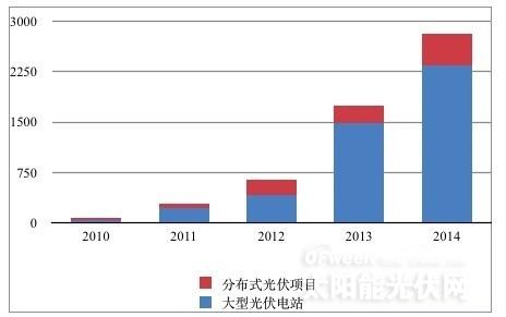 可以看出,大型地面光伏电站目前仍然是主流。然而,我们也不能忽视,2014年分布式的年新增装机量是2010年的10.6倍!前文提到,我们之所以相信光伏未来会比风电更具发展前景,最大的优势在于光伏受到的制约最小。当然,是分布式光伏!