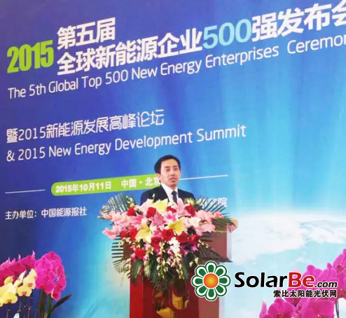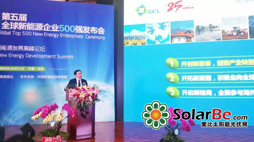 10月11日,“2015全球新能源企业500强”榜单在京揭晓,协鑫集团排名全球第11位,人民日报社副社长张建星、国家能源局新能源司副司长梁志鹏等有关领导出席发布会暨2015新能源发展高峰论坛并致辞,荣膺“商业领袖奖”的协鑫集团副董事长、协鑫集成董事长舒桦在论坛上发表了题为“布局丝路经济带,开启新能源发展新格局”的主题演讲。