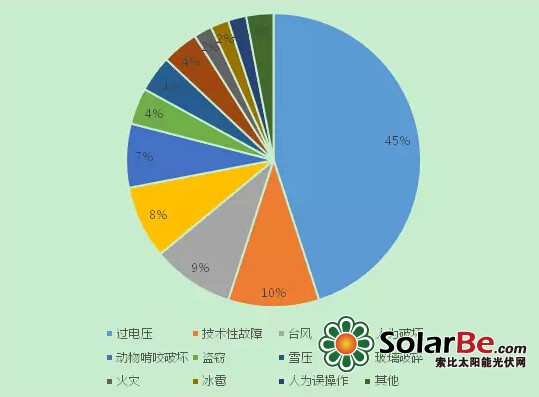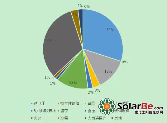 在光伏发电开发利用发达的欧美国家,光伏发电保险经过近三十年的发展已相对成熟。而尽管国内光伏的发展不断提速,光伏保险领域的创新却相对缓慢,无法满足当前行业,尤其是分布式项目崛起的迫切需求。国外几近“全包”光伏发电项目本身,存在着种种风险。如政策风险、自然灾害风险、光照资源不确定性风险、设备质量风险、运输风险、建安工程风险、运行维护风险等。随着全球光伏装机容量的增长,事故的数量和种类也在不断上升。尽管图1-1和图1-2显示的数据仅为德国的,但仍表明了光伏发电行业面临的复杂风险。